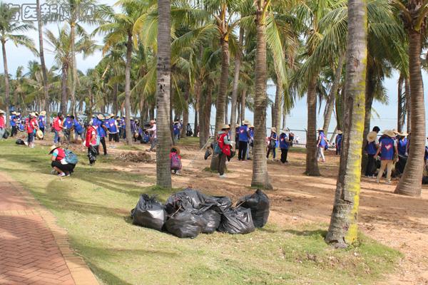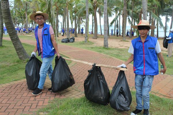 9月20日上午8:00,我校公共卫生学院、药学院的180名大一新生组成的志愿者服务队在辅导员郭芳、李咪,校团委王鹏老师的带领下,来到西海岸,参加海口市委宣传部、市文明办开展的“爱护家园 洁净海滩 我们在行动”大型志愿服务活动。由于海水倒灌,白色垃圾、成堆的海草、建筑垃圾等让海滩失去了昔日的美丽。我校志愿者到达指定点后,迅速行动起来,将沙滩上的杂物集中起来、打包好、放到指定的地点。尽管艳阳高照、气候炎热,志愿者们毫无怨言,发挥团队作战作用,认真清理海边垃圾,让海滩恢复了往日的美丽。