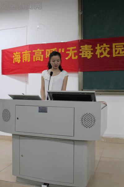 活动开始,符琬聆书记致辞,她介绍了我校禁毒预防宣传教育工作,并提出努力实现校园师生禁毒教育面达100%,师生禁毒教育活动参与率达100%,师生零涉毒犯罪率达100%的目标;接下来,海南省高校禁毒联盟主席兼秘书长汪腾老师讲话并将“