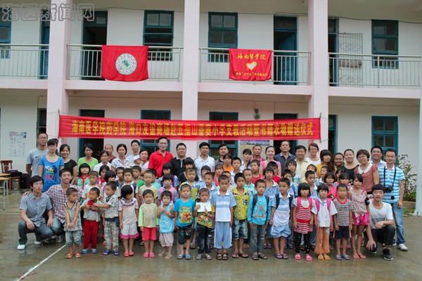 7月16日清晨,陈副校长一行就在和谐门集合,赶往五指山市毛道乡看望临床学院“扬帆起航 乡医为命——赴五指山市医疗服务队”,陈副校长一行受到五指山市卫生局局长陈飞的热情欢迎。义诊现场:队旗随风飘扬,宣传十八大精神的标语格外醒目,“提高综合素质、服务地方医疗;健康所系,性命相托”、“九个卫生好习惯”的活动展板十分精致,这些都烘托出热闹的义诊场面:村民们排着长队等候;社会实践队员们忙着维护秩序、宣讲健康小知识;义诊专家专注着为村民们诊治。看到这些,陈副校长露出欣慰的笑容,等义诊活动告一段落后,上前和义诊专家一一握手,和社会实践队员亲切交谈,当得知义诊团队将奔赴五指山市不同乡镇开展活动时,陈副校长鼓励大家不辞辛劳、认真实践、切实将先进的医疗服务送给基层人民。五指山的天说变就变,刚才还是艳阳高照,一下就乌云密布、大雨倾盆,经过短暂的休整后,陈副校长一行顶着恶劣的天气,沿着盘旋的山路,前往五指山市红山乡参加药学院“爱心支教”团队的捐赠仪式,五指山市教育局张忠局长、黄朝南书记热烈欢迎陈副校长一行。捐赠仪式上,陈副校长将书本和衣服送到当地小朋友的手中,并勉励他们好好学习,做祖国合格的接班人;在捐赠仪式后,陈副校长查看了实践团队厨房、宿舍,看到同学们艰苦的就餐环境、打着地铺,陈副校长嘱托大家注意健康和安全,用真心去服务当地的留守儿童。