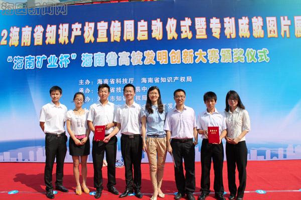 2012年4月20日,“海南矿业杯”海南省高校发明创新大赛颁奖仪式在海口市人民大会堂举办。海南省人民政府副省长林方略、国家知识产权局副局长杨铁军、省政协副主席、省科技厅厅长王路、省教育厅谭基虎副厅长等领导莅临现场并给获奖选手授奖。