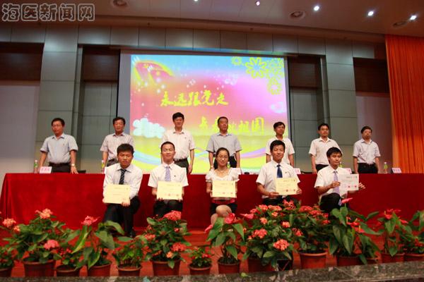 大会在雄壮的国歌声中拉开帷幕。会上,在全场600余名“老团员”的陪同宣誓下,137名新团员面对鲜艳的团旗许下了庄严的承诺;校团委组织部长王鹏宣读表彰决定之后,伴随着昂扬的共青团团歌声,第十二届“挑战杯”全国大学生课外学术科技作品竞赛优秀组织奖、第十二届“挑战杯”全国大学生课外学术科技作品竞赛终审决赛三等奖、海南省“五四”青年奖章、海南省五四红旗团委、海南省优秀共青团干部、海南省优秀共青团员、海口市青年志愿服务先进集体、海南省高校发明创新大赛发明类二等奖、