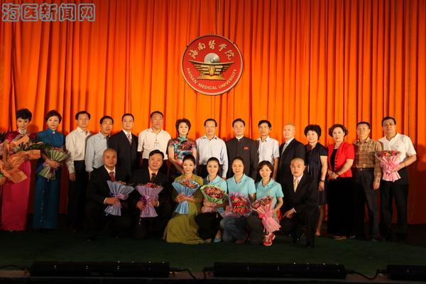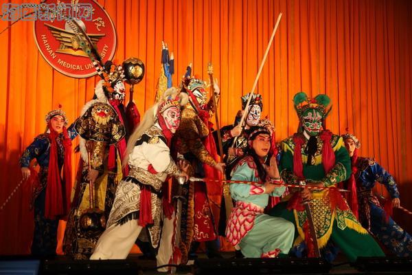 国际报告厅上演了一场精彩的京剧盛宴——《红色经典 传统名段》演唱会。给海医师生们捧上这场盛宴的是国家京剧院一团的艺术家们。这是2012高雅艺术进校园——京剧艺术走进海南高校的第四场演出。海南省教育工委专职副书记麦浪、省教育厅体卫艺术处处长陈昌伟、省教育工会副主席张祥腾、省教育厅体卫艺术处副处长林洪珊;
