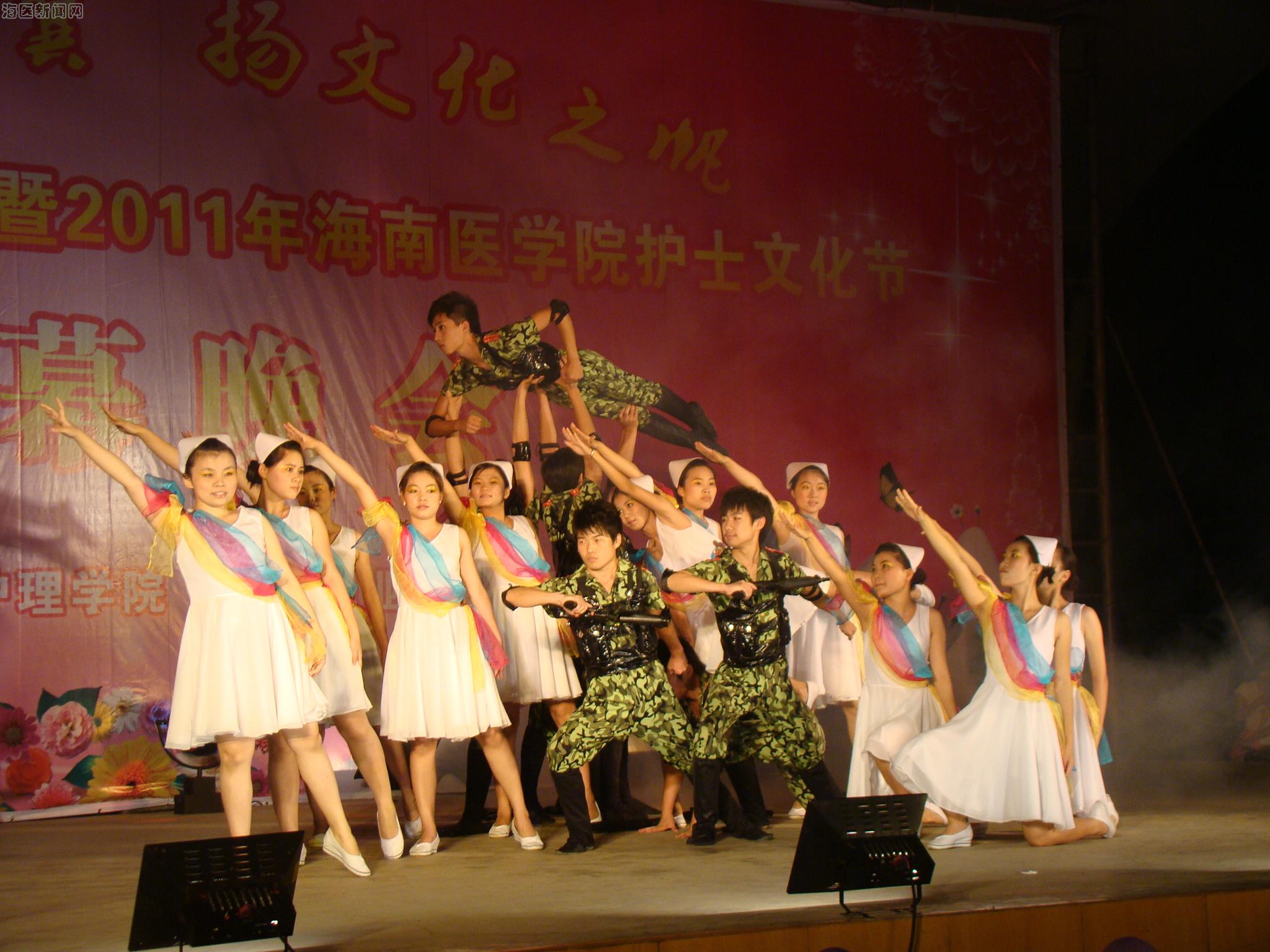 分,国际护理学院和高等职业教育学院在风雨操场联合举办了主题为“展天使之翼,扬文化之帆”的“