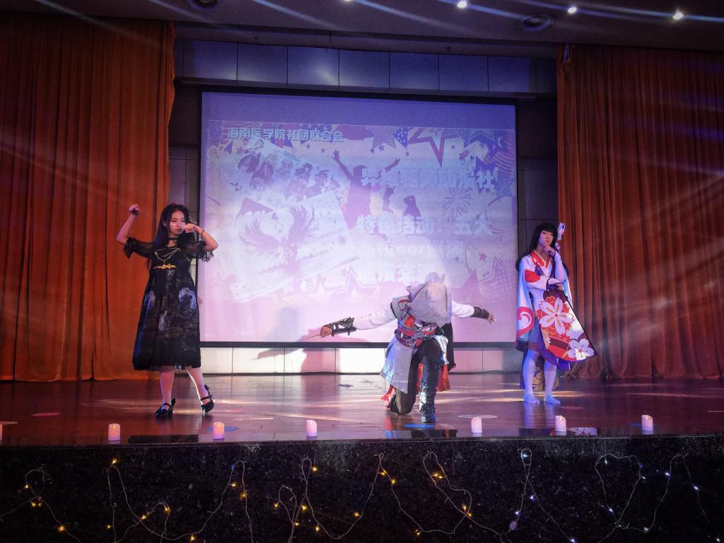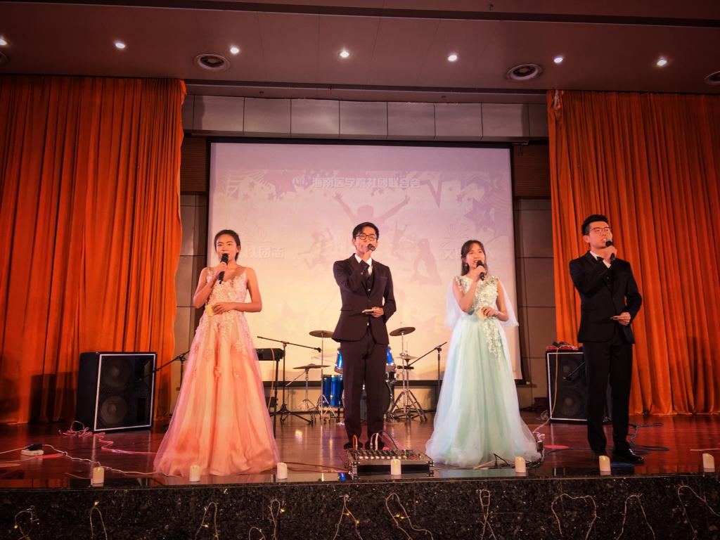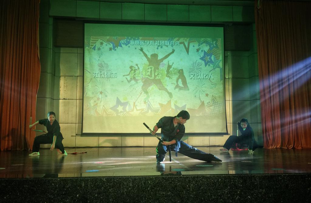 本次活动以“社以团志,文以化人”为主题。当晚,相关部门的领导和老师,各二级学院的团委书记和老师们出席了本次活动。在校团委林仕芬老师的精彩致辞后,4位主持人宣布闭幕式正式开始。强劲的音乐声、鼓声响起,我校“学院路三号”乐队以一曲《百年孤寂》拉开帷幕,劲爆的乐声震撼全场,赢得在场观众阵阵掌声。晚会用歌舞、小品、乐器演奏等精彩的节目为观众呈现了丰盛的视听盛宴。来自汉服社歌舞表演的《大鱼》动作优美,引人入胜;由大学生艺术团演出的《爱如潮水》,美妙动听的钢琴声和深情的演唱,触动了在场观众的深深情怀;实用医学协会、话剧社和急救协会自导、自演的小品《谁来裁判人性》生动展现了当下社会对人性亲情、友情的珍惜和感动;由琼台师院汉服社带来的古典舞《棠梨煎雪》展示着东方的神韵。同时街舞协会、轮滑社、手语协会、实用医学学会、国教院、音乐协会、青协、炫舞双节棍也带来了精彩的表演。整场晚会精彩不断,高潮迭起,赢得台下阵阵掌声,欢呼声一浪高过一浪。一支由部长团舞蹈演出的《Good time》为本场晚会划上了圆满的句号。歌声中饱含着同学铿锵自信和对未来的无限希望,绽放着青春与梦想的光芒。