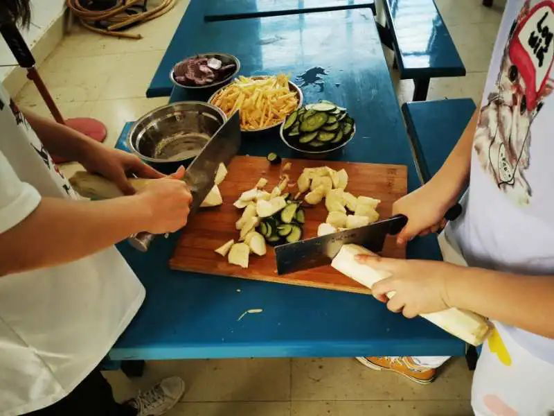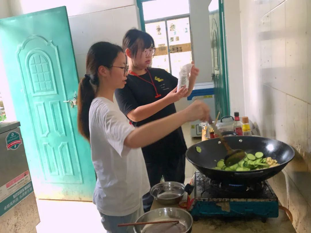午饭后,我们进行了简单的休整。傍晚时分,在带队老师虞凯惠的带领下,我们一起买菜备菜准备晚餐,大家分工明确、协作默契,圆满完成了在文史小学的厨艺首秀,气氛有趣又温馨。等远处山头最后一缕霞光慢慢褪去,天空开始下起了小雨,笼罩在烟雨中的文史村悠远宁静,在这种氛围里,我们一起讨论和准备着明天的授课内容,非常期待与小同学们的见面。