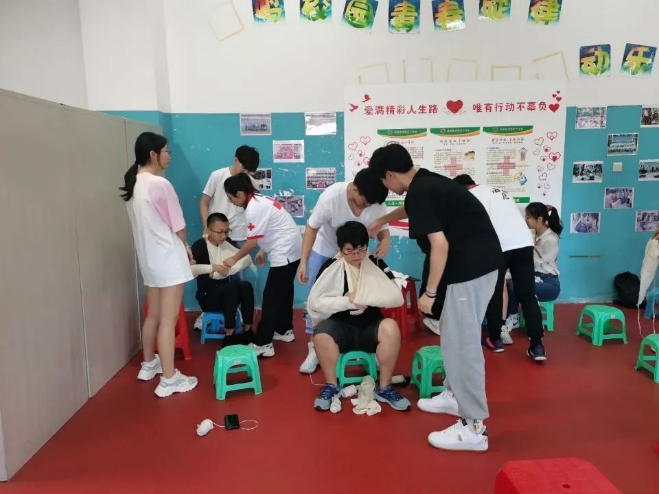 具体的学习内容有:单胸包扎、前臂大出血包扎、手背八字包扎、手心八字包扎、手掌断离伤包扎、双肩包扎、双眼包扎、头部包扎、膝盖包扎和肘关节包扎。