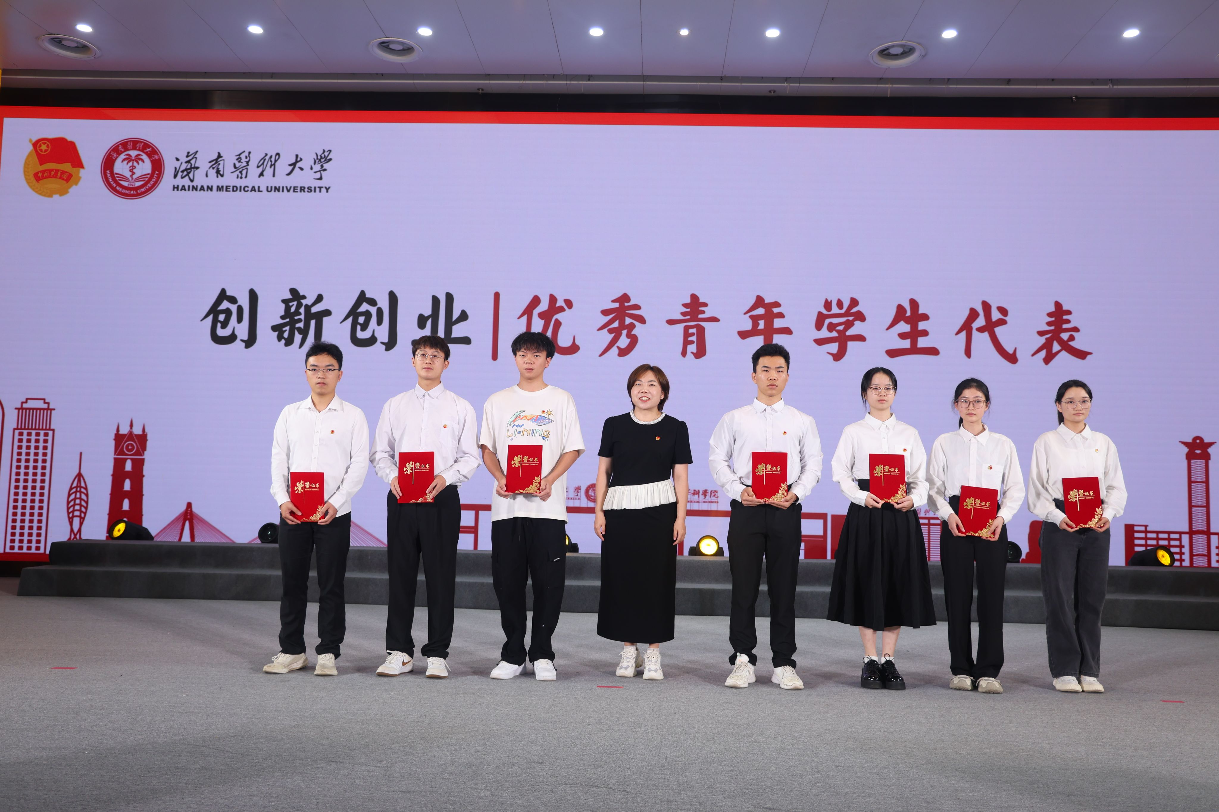 大会接近尾声时,学生代表声情并茂地朗诵了原创作品《桄榔林中的筱海书》。该作品以我校独特的校园文化为创作背景,汲取东坡精神的深厚内涵,深情颂扬了医者仁心的崇高精神,以及我校青年学子传承优良传统、勇担时代使命的决心与信念,再次将现场气氛推向高潮。