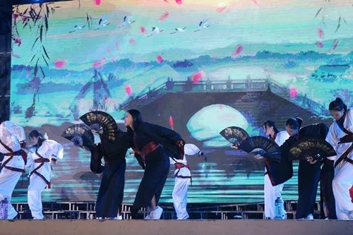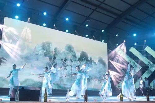 大学生艺术团舞蹈《水墨春韵》及乐器演奏《风花雪月》,将观众带入中国古典的柔刚之美中,让人在绚丽的灯光效果中体验了中华传统文化的风采神韵。