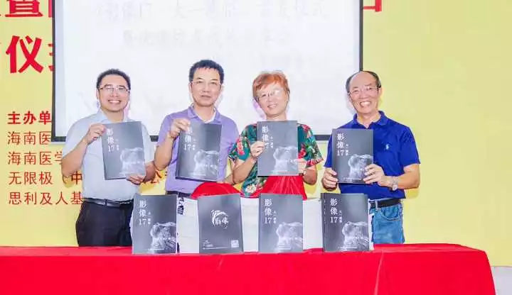 学生工作处处长邝家旺,第一临床学院党委副书记张万科,医学影像学专业负责人涂蓉教授、王身坚老师共同为《影像17·大一感悟》首发揭彩。