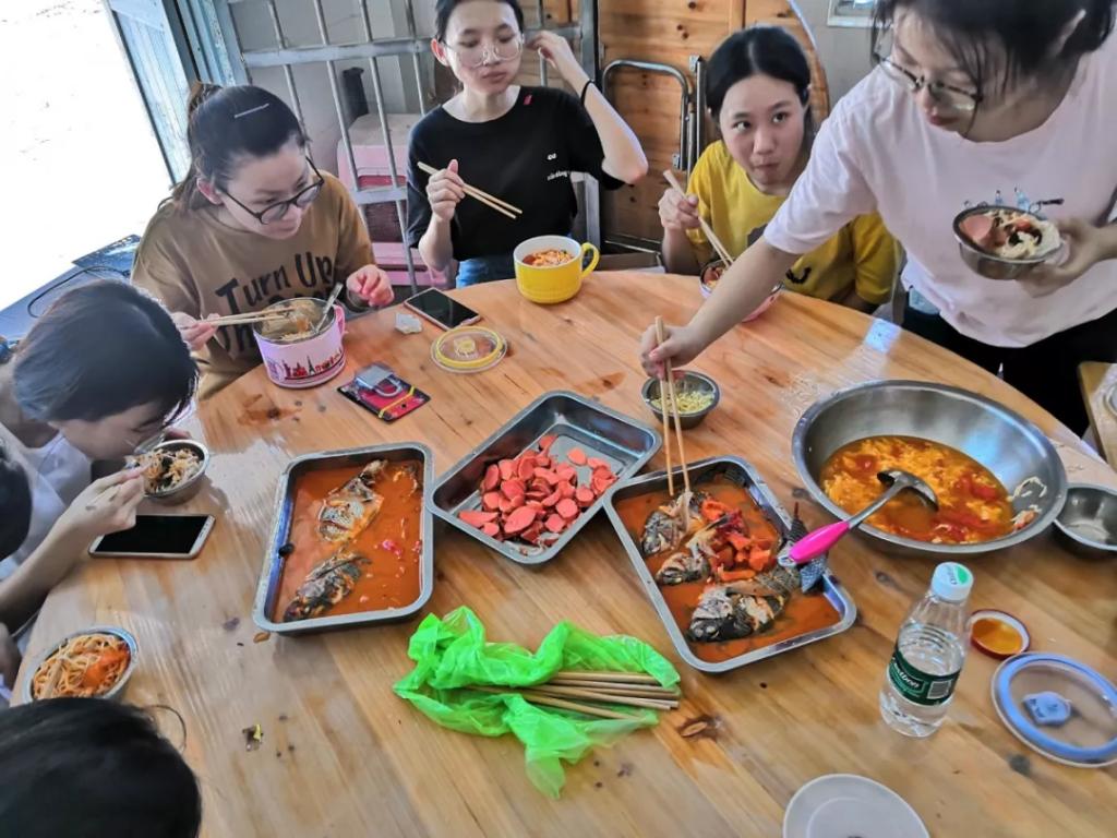 中午,在领队老师的带领下,小组成员热闹而不失有序的开始准备午餐,大家各司其职,慢慢的熟悉起了这个地方。