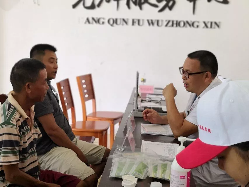 “以医扶人”医疗服务团队进行“入户义诊”后又在番豆村文化中心组织了“现场义诊”活动,经王基鸿书记的动员,共有65名村民来到义诊现场,专家面对面问诊后,为30名分别患有高血压、糖尿病、颈椎病、脑梗、龋齿、上呼吸道感染等疾病的村民开方赠药。同时团队学生志愿者为村民测量了血压、血糖。