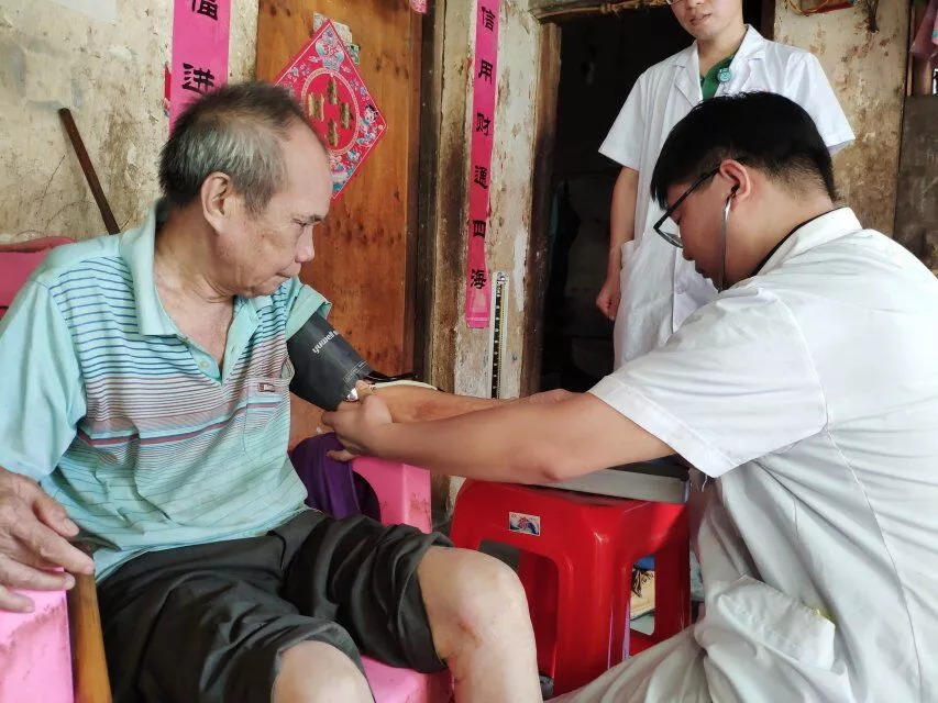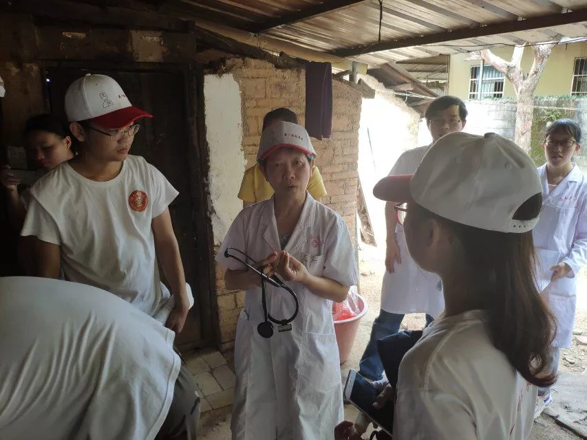 热带医学与检验医学院副书记、番豆村驻村第一书记王基鸿的带领下,为部分建档立卡的贫困户提供送医入户服务,共惠及3个贫困户,6名村民。其中年迈贫困户符某情况较为特殊,尽管已脱贫,但其家人外出务工,现独居在家,患有心源性水肿,生活境况仍有待改善。陈竑主任为老人细致诊疗,并对随行的医学生志愿者进行了生动的现场教学。