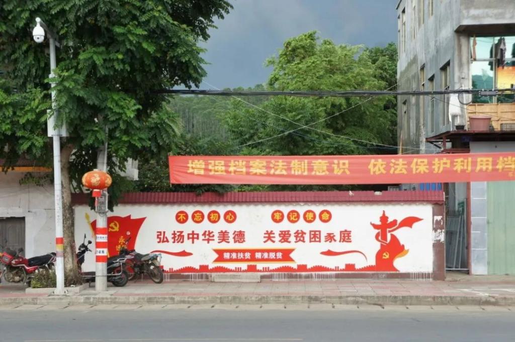 “精准扶贫,打好脱贫攻坚战”的字样和文化墙