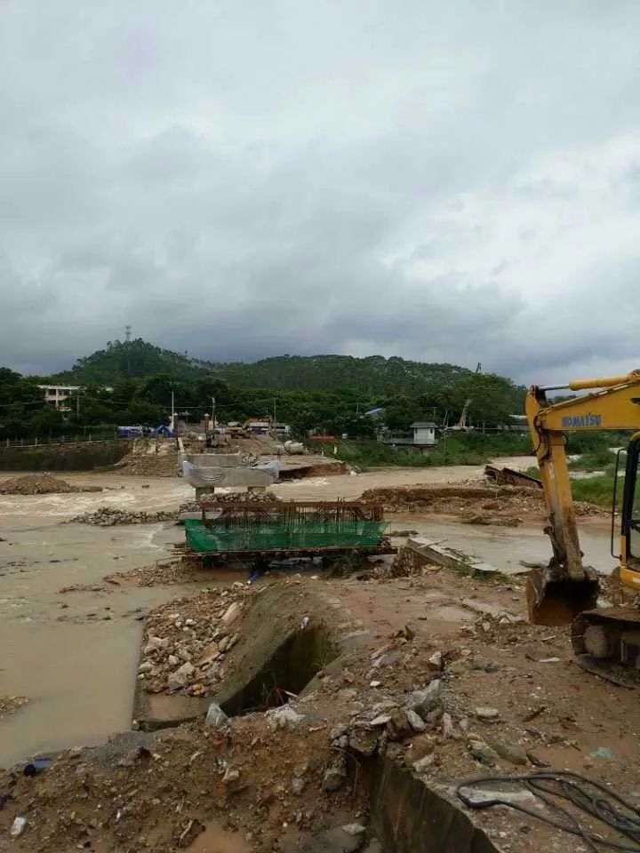 台风带来的洪水冲垮了来往的大桥