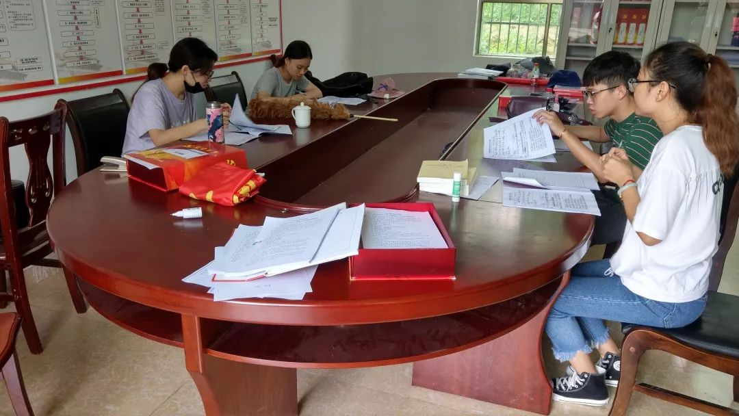 今天上午“H.O.P.E”扶贫团队的大学生党员协助番豆村支部委员会核查并进一步完善该村党建工作,参观学习了该村党支部党员发展规划、目标,入党积极分子培养计划,发展党员工作会议记录/党建工作半年总结及年度工作总结等做法和经验,团队成员在此过程中获益匪浅。除此之外,在驻村第一书记王基鸿同志和村两委干部以及我院党员田丰老师的共同带领和指导下,全部党员和预备党员进行了重温入党誓词活动。