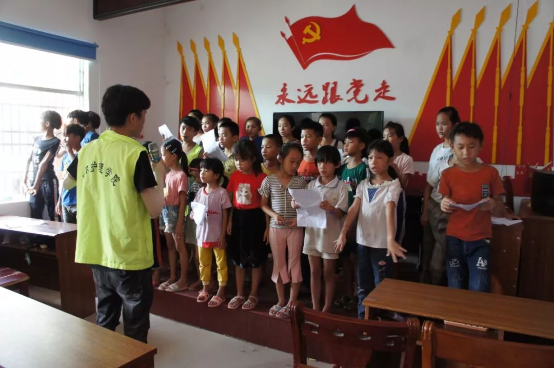 下午文化扶贫小队组建合唱团用一首首健康向上,优美动听的歌曲,激发孩子们的爱国主义精神和高尚的道德情操。