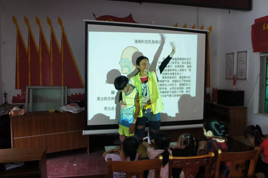 紧接着,我们向孩子们介绍了海姆立克急救法,它被称为全世界救人次数最多的方法,提高孩子们在生活中救急救护能力。