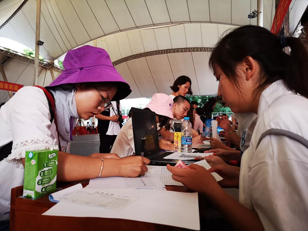 在8月24日早,学长学姐们已经在准备好了迎新事宜,在风雨操场中等待着萌新们的报道,在此之前,就已经安排了老生一对一接待新生,我院学生穿着院服接待着一个又一个新生,为新生们办理入住卡、激活一卡通和领取军训服等事宜。我院老师来到迎新现场看望新生及家长,为新生家长解答疑惑。