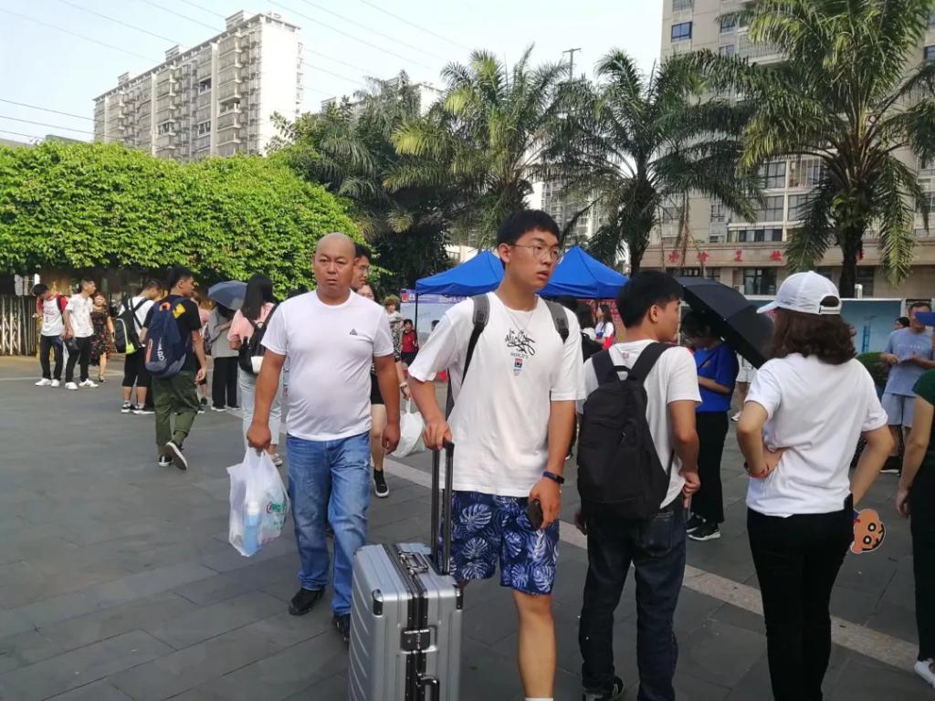 烈日炎炎也抵挡不住同学们踏入大学校园的热情