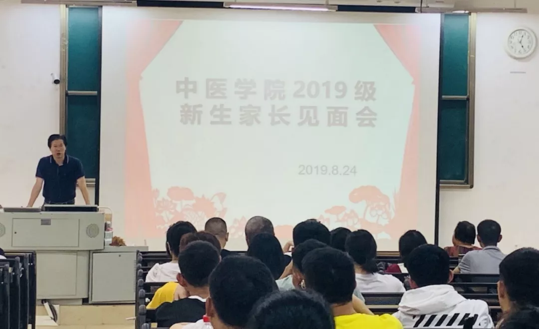 当天下午5点,在4-109举办了中医学院2019级新生家长见面会。中医学院冯志成副院长针对专业等问题答疑解惑,家长对孩子们接下来的学习有了进一步的了解。
