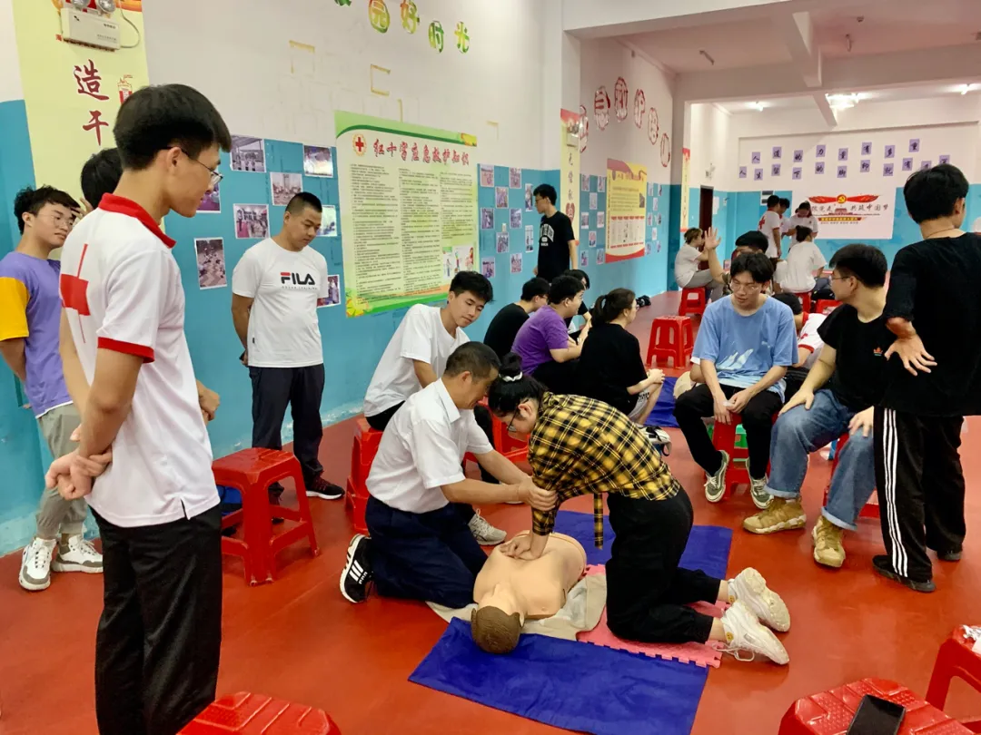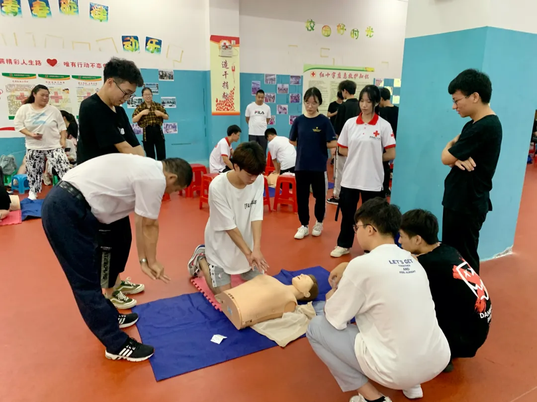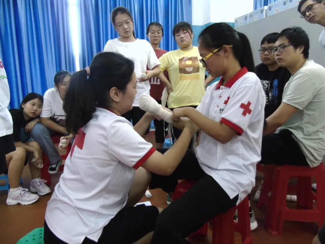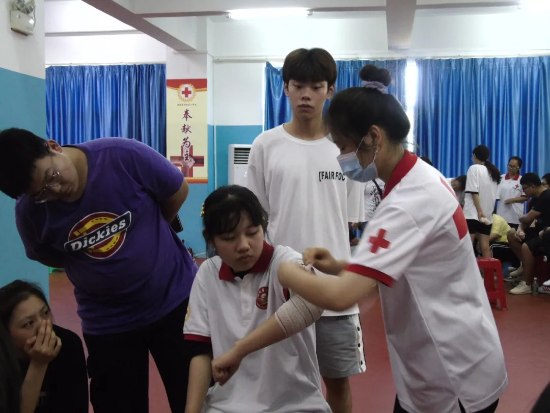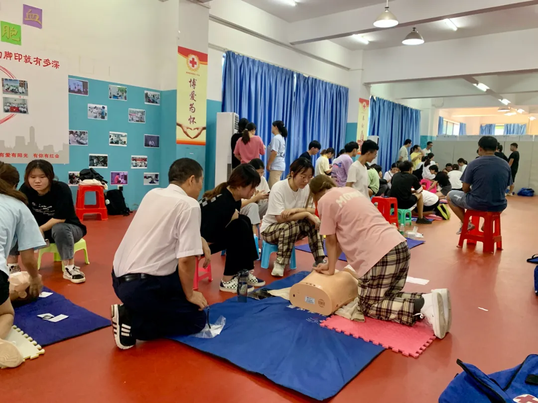 红十字会于5月28号晚上7:30在4-108进行了急救理论知识培训,于5月29日上午8:30~12:00在宋子文体育馆开展了心肺复苏技能的培训,于5月29日下午14:30~6:00在宋子文体育馆举行了创伤包扎的实操教学。