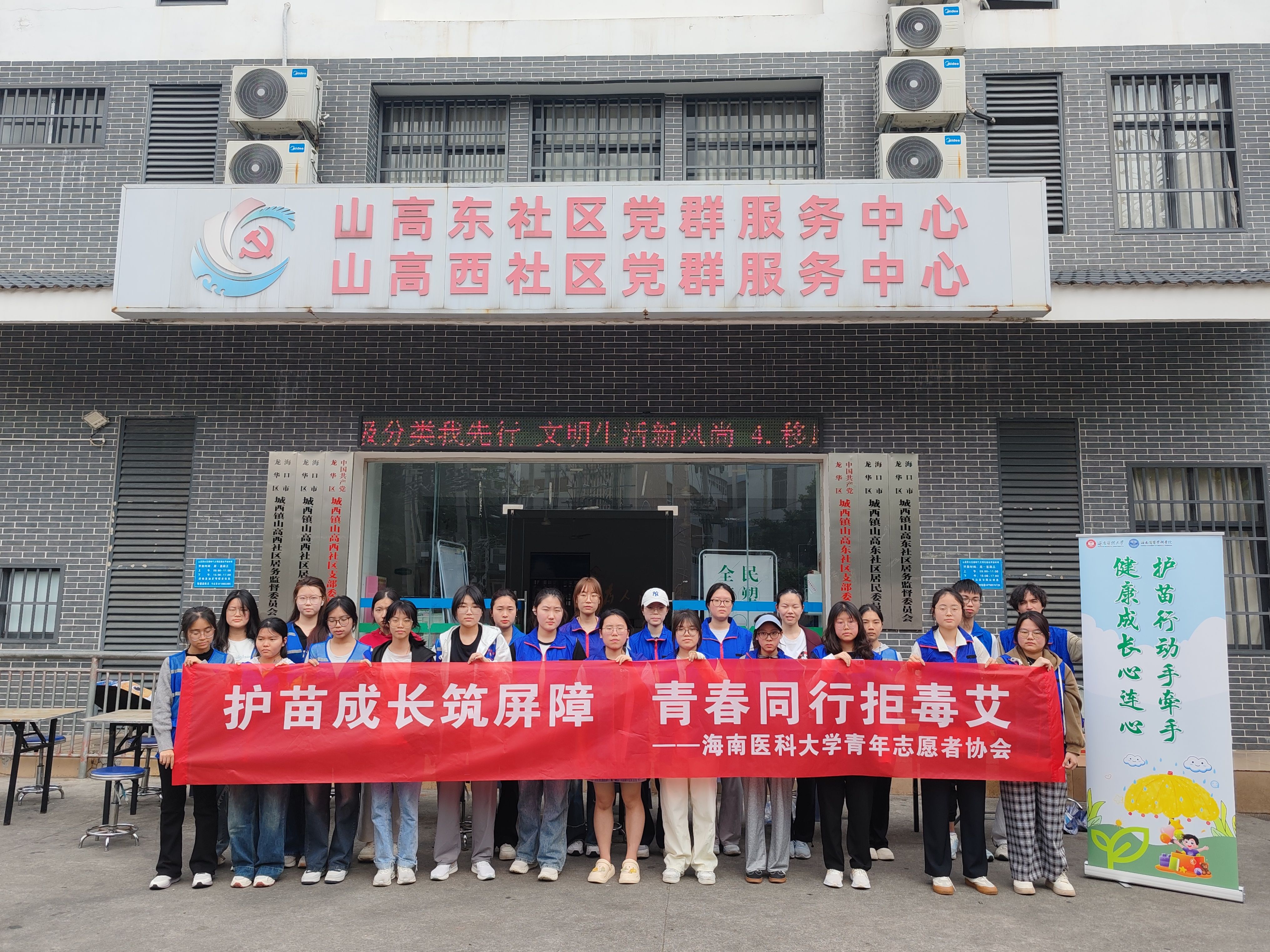 3月22日,海南医科大学青年志愿者协会走进海口市龙华区山高村社区,开展以“护苗成长筑屏障,青春同行拒毒艾”为主题的禁毒防艾宣传活动。