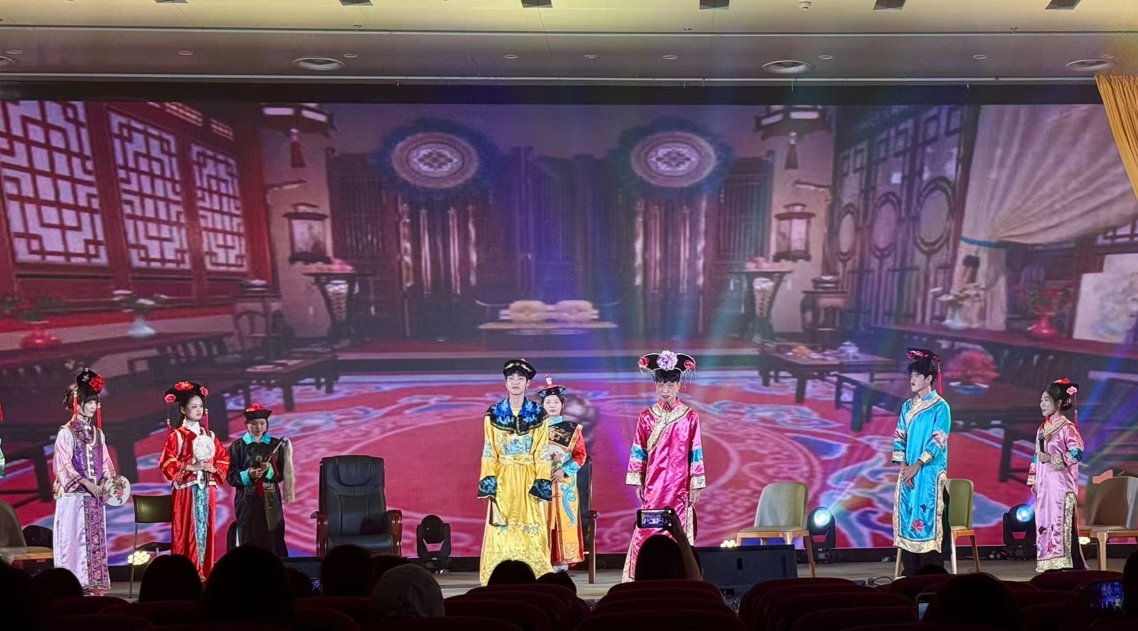 活动当晚,随着主持人热情洋溢地开场,活动正式拉开帷幕。音乐协会带来的歌曲演奏《落叶归根》,悠扬的旋律瞬间将现场气氛点燃;大学生艺术团的歌曲伴舞《入画江南》,如诗如画的表演让观众仿佛置身于江南水乡;青年志愿者协会的舞台剧《宫廷期末风云》和《甄腾传·内卷风波》,以幽默诙谐的剧情和精彩的表演,引发了现场阵阵笑声和掌声;其带来的歌曲演奏《赤伶》《身骑白马》、舞蹈《朝天门》以及歌曲伴舞《稻香里的民族风》,同样展现出学生们多才多艺的一面。