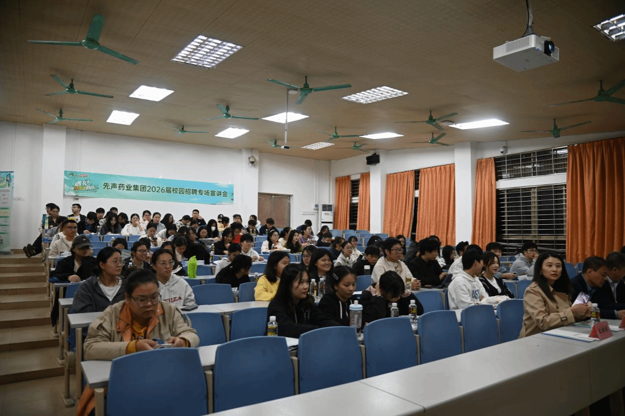 为搭建企业与学生间的高效沟通桥梁,帮助学子明确职业方向、获取优质就业机会。2025年11月20日19:00,海南省先声药业在崇礼楼101教室举办药学院专场招聘宣讲会。本次会议现场互动热烈,学生就职氛围浓厚。