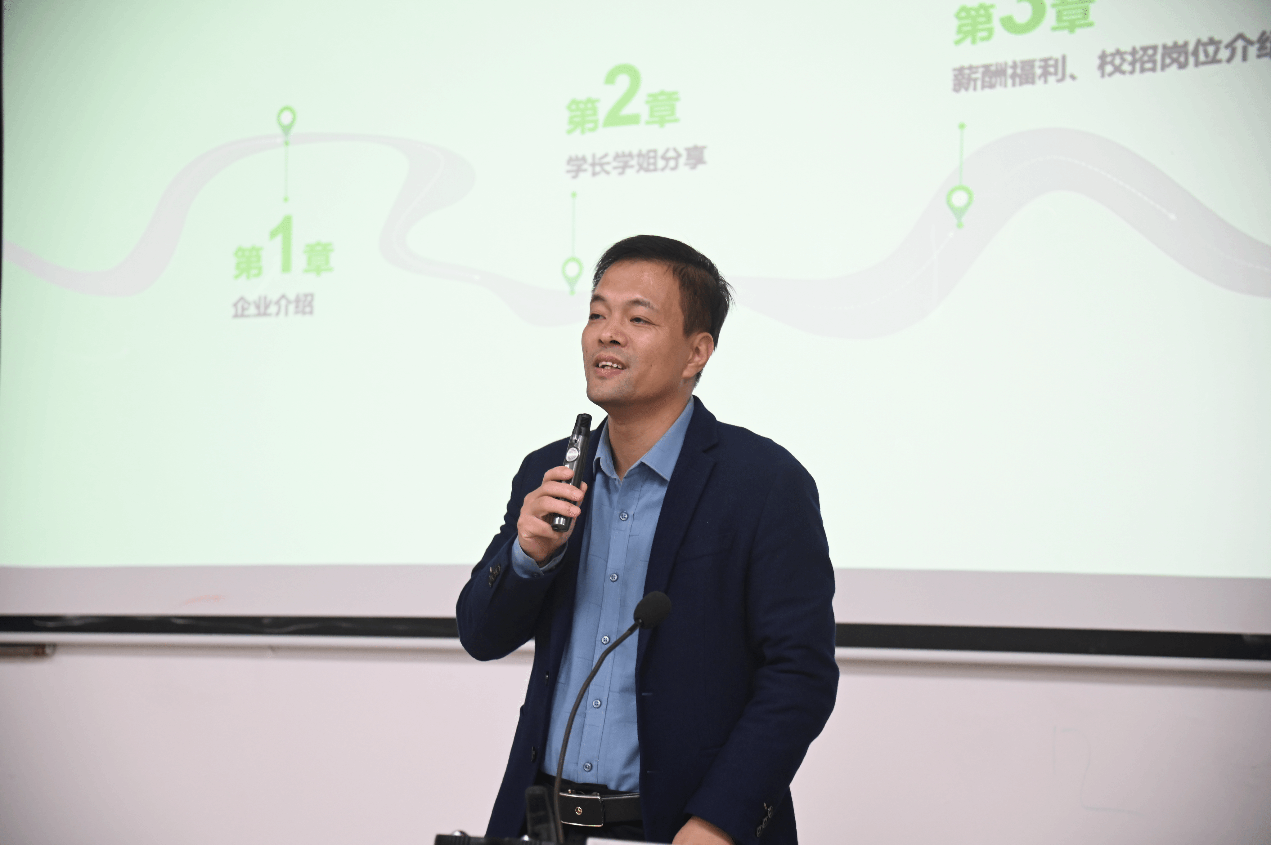随后,海南先声药业余庆祝总经理介绍了当下医药行业的趋势,并全方位、多角度地介绍了先声药业的详细情况。从企业的发展历程、核心业务、科研成果,到企业文化、人才培养体系、员工职业发展路径,余经理的分享着重介绍了不同岗位的工作差别和应聘要求,让同学们对不同岗位有了更为全面和深入的认识。同学们全神贯注,不时认真记录关键信息。