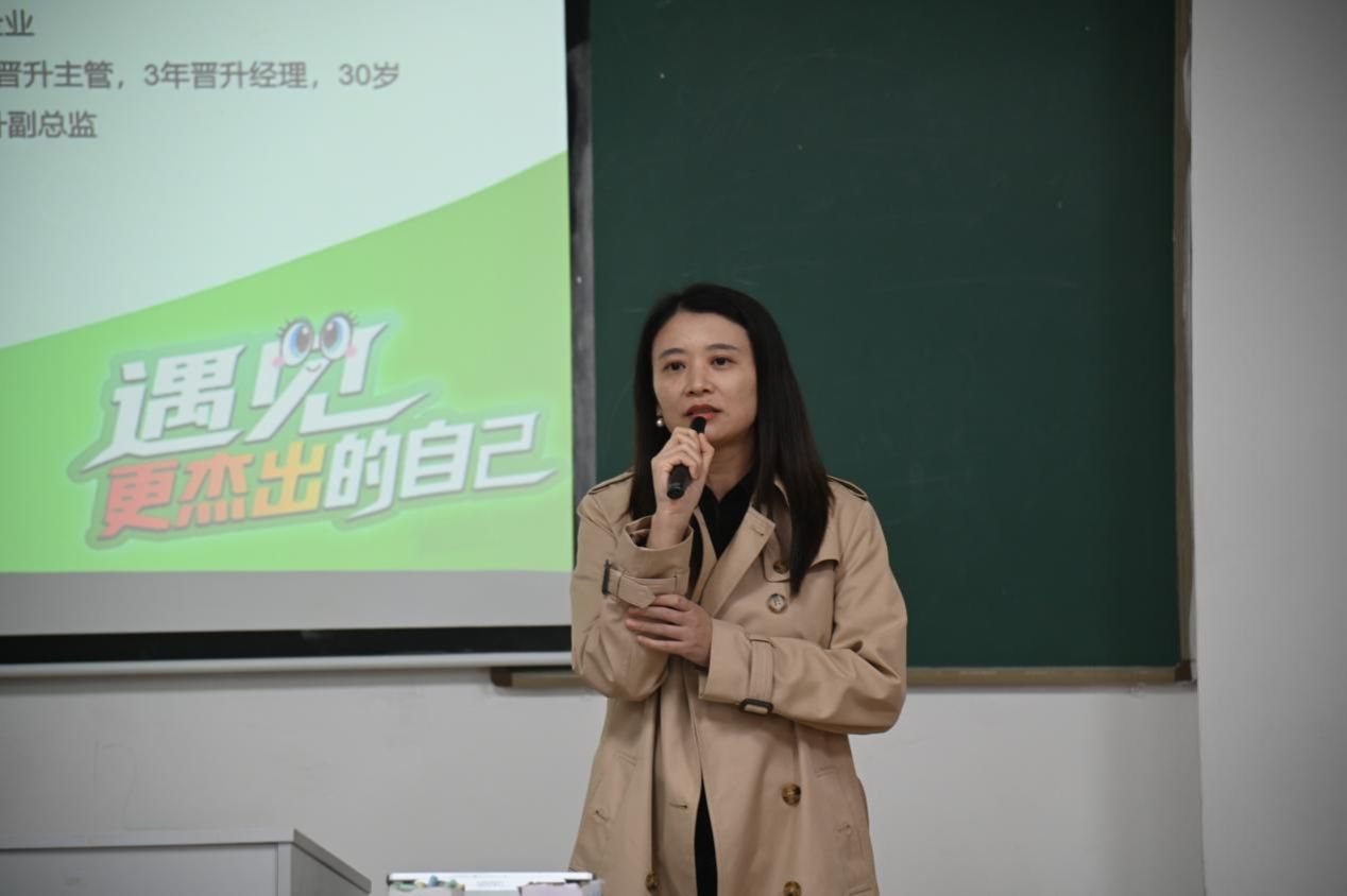 最后,海南先声药业HR宣讲官陈毅群经理为大家讲解了同学们最关心的2026届校招政策,她同时分享了自己的二十余年在多个岗位任职的工作经验,让同学们深刻理解了职业发展的多样性和可能性。她详细解读了校招流程、岗位需求及人才选拔标准,并强调公司注重应聘者的专业能力与综合素养。同时,结合自身成长路径,鼓励大家不管在什么岗位都要发光发热。