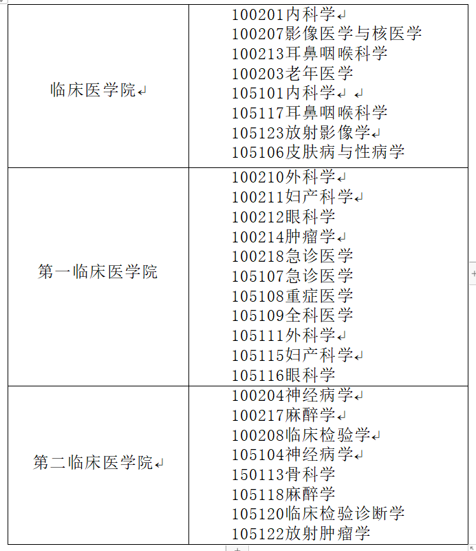 各位优秀的同学,我校已有临床医学院、第一临床医学院、第二临床医学院、智能医学与技术学院、药学院、儿科学院、公共卫生学院7家招生单位开展2025年优秀大学生夏令营活动。其中, 我校临床医学由临床医学院、第一临床医学院、第二临床医学院三家招生单位分工协作,按照二级学科分工共同完成夏令营活动,具体分工见表。请有意参加夏令营活动的同学选择二级学科专业对应的招生单位进行报名,不要重复报名。若有学生已报名了多个专业的夏令营活动,请选择参加一个夏令营活动。