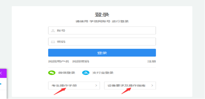 使用学信网帐号登录系统,点击同意学信网用户协议。(无学信帐号者请按要求完成实名注册)