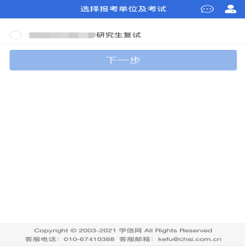 考生选择自己应参加的考试,点击【下一步】
