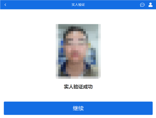 稍等片刻,实人验证通过时,电脑页面显示“实人验证成功”,点击【继续】方可进行后续操作。