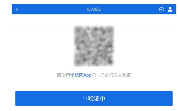考生用二机位设备上的学信网 App 右上角的扫一扫功能,扫描电脑页面上的二维码,此时电脑页面显示“验证中”状态,考生在二机位设备的学信网 App 中按照提示进行实人验证操作。