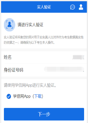 选择“学信网 App”方式后,点击【下一步】,电脑页面会显示实人验证二维码。