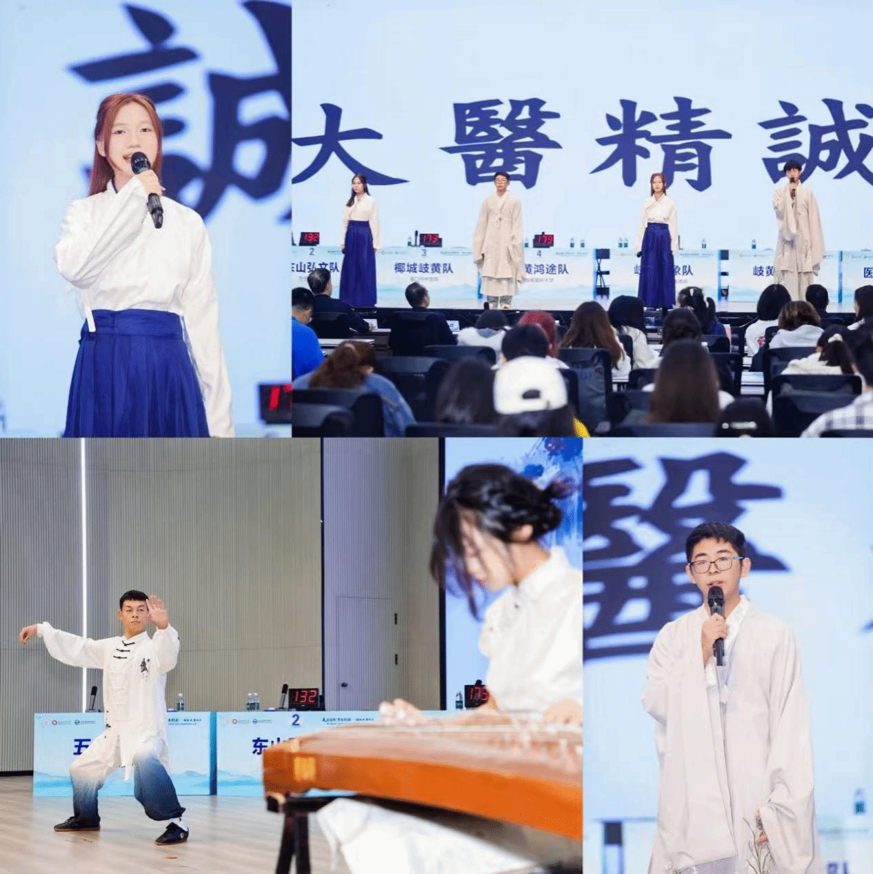比赛间隙,海南医科大学的同学们带来了精彩的“大医精诚”主题朗诵与武术表演:朗诵者们声情并茂,字字铿锵,将“先发大慈恻隐之心,誓愿普救含灵之苦”的医者初心娓娓道来;武术表演者身姿矫健,招式刚柔并济,将中医“治未病”的养生理念与中华武术的精气神融为一体,赢得全场阵阵喝彩,为紧张的赛事增添了浓厚的文化氛围。