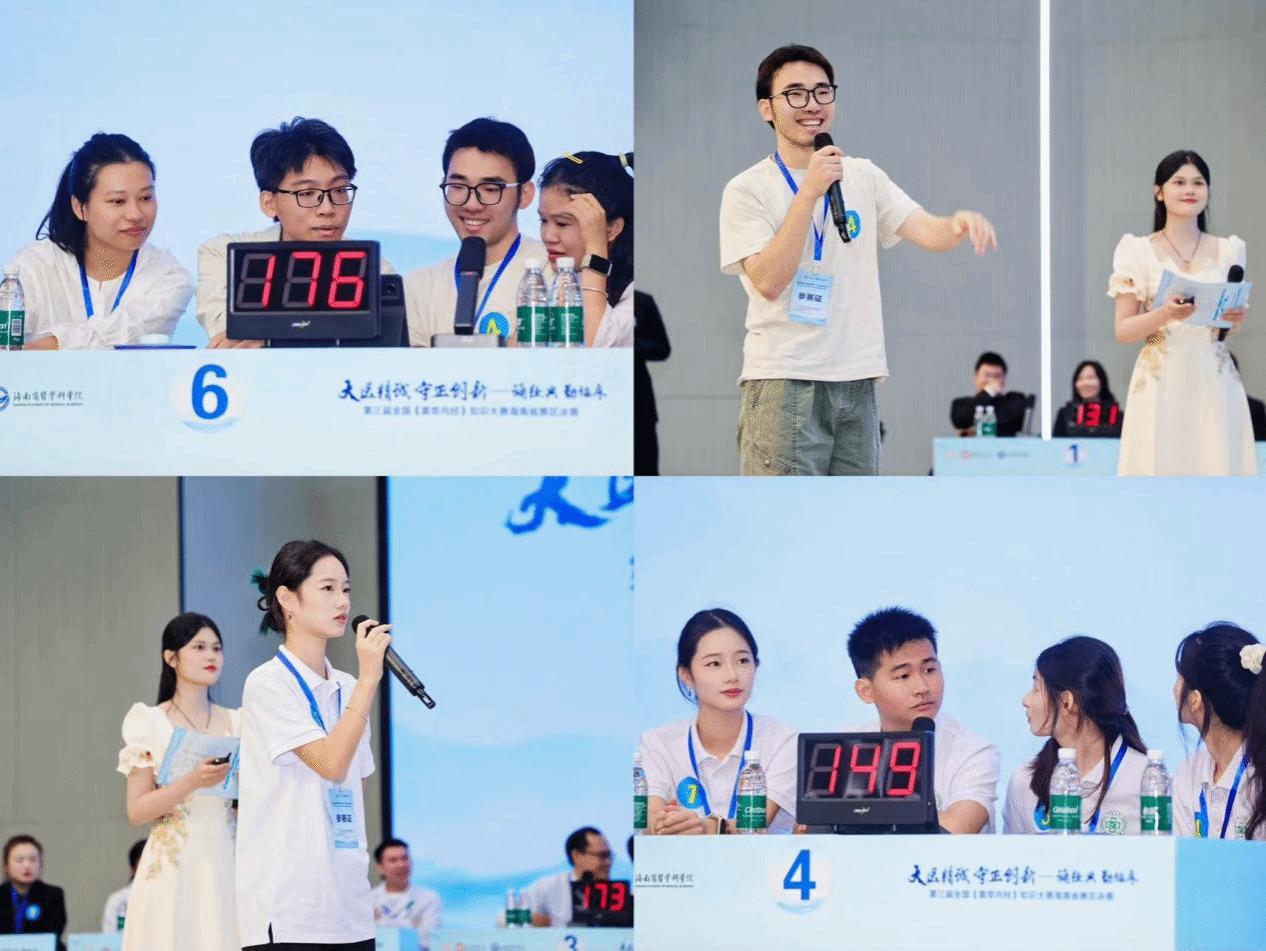 当千年经典的文字,在自贸港的阳光下被青年学子重新诠释,这场赛事早已超越“知识竞赛”的范畴——它是海南医科大学深耕中医药教育、坚持为党育人、为国育才使命的生动缩影,是学校搭建传承平台、激活自贸港中医药产业“人才蓄水池”的坚实举措,更是我们以经典为桥、推动海南中医药走向世界的责任担当!作为海南中医药教育的排头兵与引领者,海南医科大学将持续以赛事为纽带,深耕经典传承、强化人才培养、推动产教融合,与全省中医药同仁一道,携手广大青年学子以青春之力解码古圣智慧、以奋进之姿赋能产业发展。愿岐黄薪火在琼岛大地上代代相传,让中医药这颗中华瑰宝在自贸港的沃土上愈发璀璨,为海南建设国家中医药服务出口基地、打造中医药国际化新高地注入不竭动力,共同书写海南省中医药事业守正创新、蓬勃发展的崭新篇章!