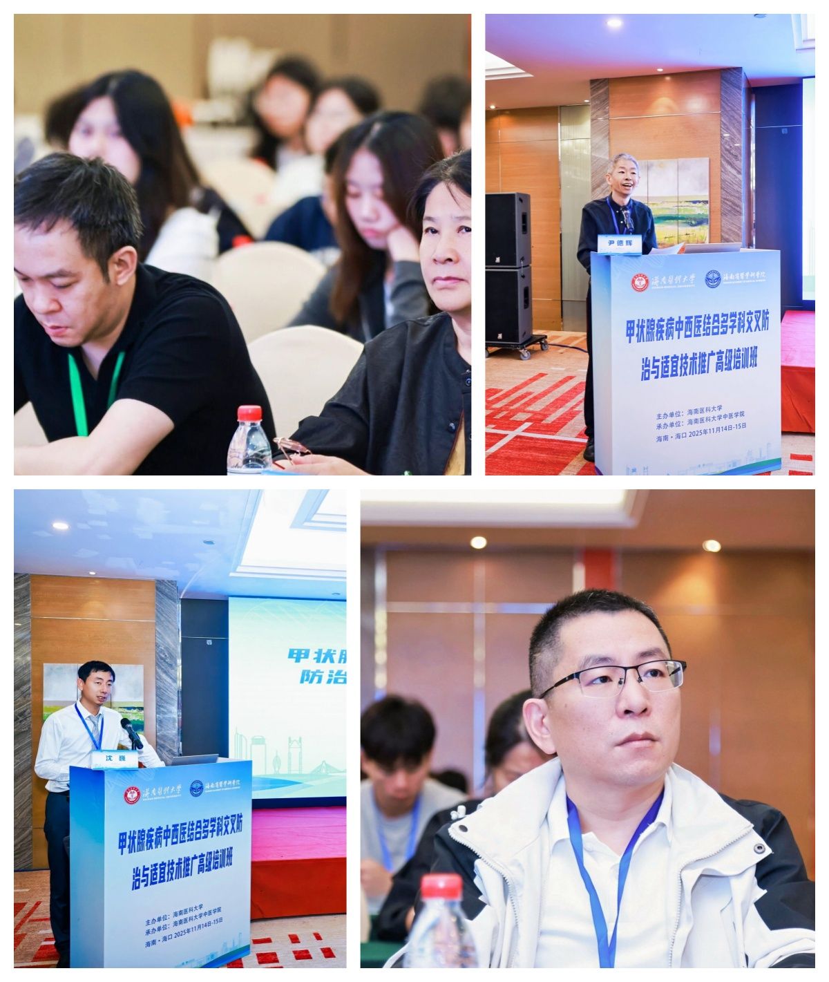 2025年11月15日,由我校主办、中医学院承办的“甲状腺疾病中西医结合多学科交叉防治与适宜技术推广高级培训班”在海口举行。本次培训为国家级继续医学教育项目,以“中西医融合、多学科协同”为主题,聚焦甲状腺疾病诊疗新理论、微创技术及中西医结合实践,为全国医疗同仁搭建了多学科交流平台。本次培训吸引了来自全国的临床医师、高校科研人员、基层医疗工作者等300余人参会,我校丁治国副校长为本次培训致辞,第一联合党委郭向书记、朱敏副书记、董秀娟副教授出席。本次培训由中医学院尹德辉教授、沈巍教授主持。