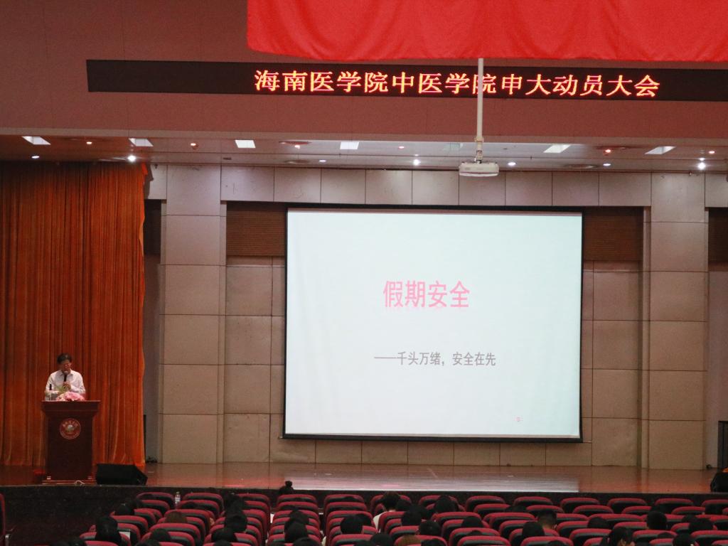 在更名海南医科大学方面的优势所在,这些优势给予了同学们极大的自信;接着,书记还为在场的同学们详细地描述了中医学院的发展历史以及学院拥有的优势,即“教学基础设施”、“师资队伍”和“教学工作的亮点与特色”等方面,这是我院学子学习知识的有力保障,同学们的热情更是在此刻迎来了顶峰。最后,书记就迎检的相关工作进行了说明,并希望同学们做到不迟到,不早退,不旷课,同时保持宿舍环境的整洁,展现出中医学院学子良好的精神风貌。