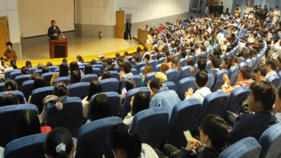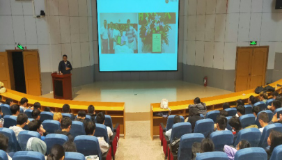 大会由海南省高校首位捐献造血干细胞的陈磊老师主讲,陈磊老师把他从第一次献血、第一次加入造血干细胞志愿者库、初配成功接到通知、配对成功捐献造血干细胞的过程和体验生动有趣的与大家分享,他用自己献血和捐献造血干细胞的亲身经历为同学们诠释了助人的意义,他说,“能够帮助别人,挽救一个生命,这是一件快乐的事情。”这不仅仅是一件快乐的事情,这还是一件伟大的高尚的事情。