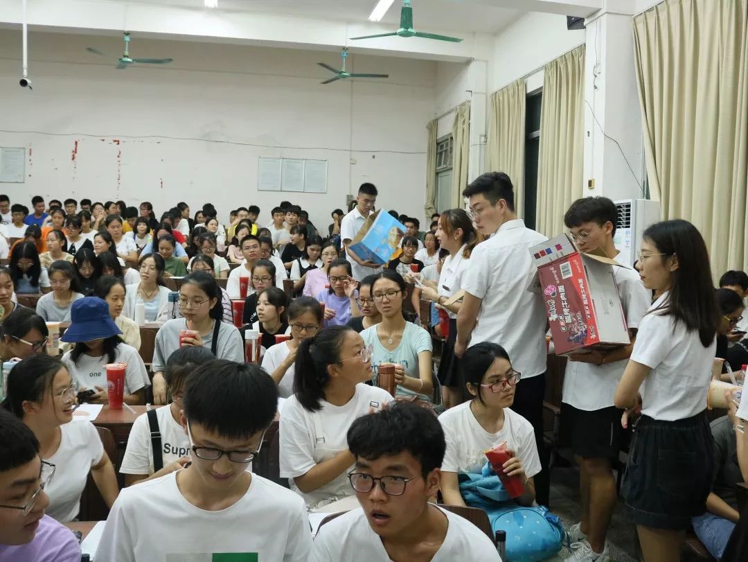 教室虽然有空调,但在夏日的夜晚依旧热度不减,学生会干事们在中途体贴的附赠奶茶给各位小可爱们,为这炎炎夏日送来清凉,同学们也积极配合,争相选择自己心仪的部门。