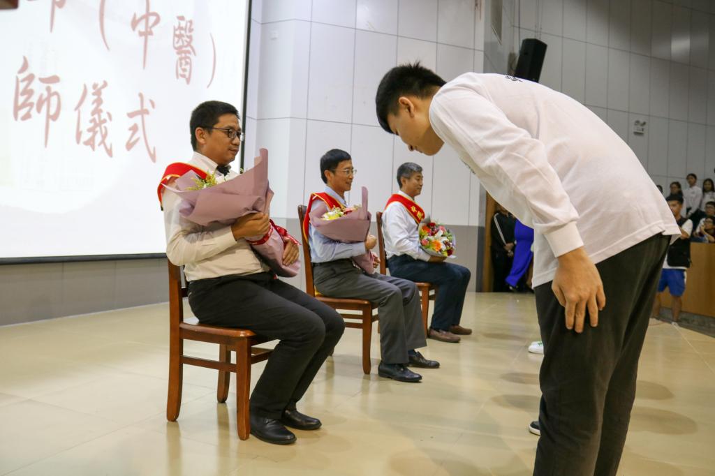 拜师仪式第一项由中医学院党委书记冯钊致辞,冯书记指出中医学院在积极开展师承和学位教育有机结合培养高层次中医药人才的模式,并表示会一如既往地做好老中医药专家学术经验继承工作,发挥老中医药专家在中医药继承发展和人才培养中的“传帮带”作用,为培养高层次中医人才提供条件,力争使老中医药专家学术经验继承工作成为培养中医药人才的一种制度化教育。紧接着庄重简朴的拜师仪式在悠扬庄重的古乐声中举行,学生弟子们一一向这些在中医界有所建树的师父们鞠躬奉茶、献花行礼,象征了“薪火相传,师恩深重,如峰如峦”。