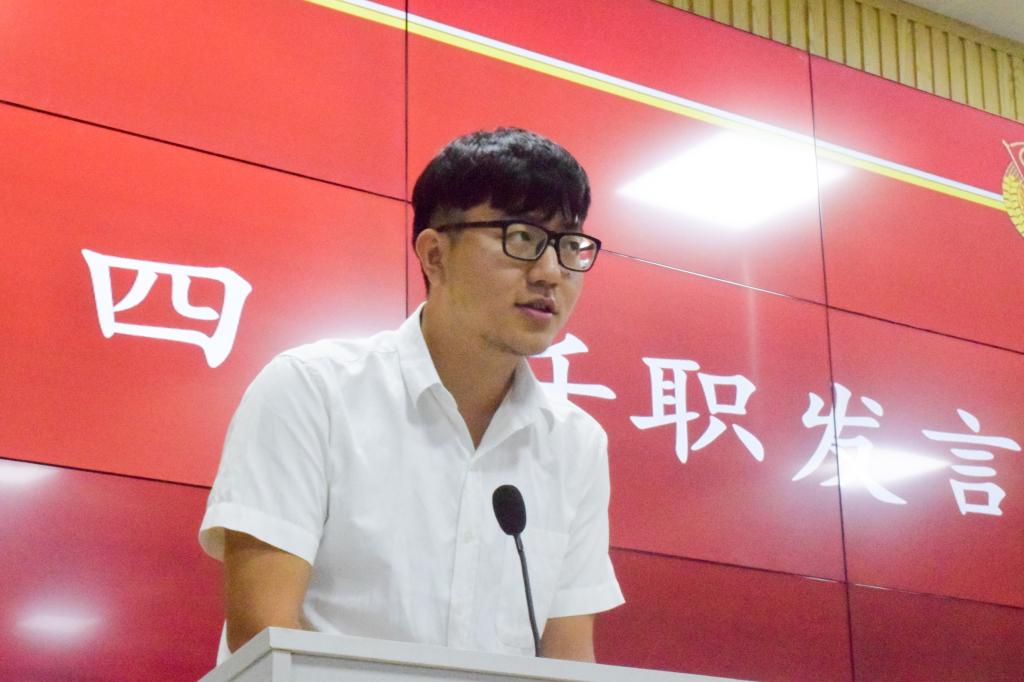 中医学院第十五届主席团及部长团进行任职发言;大会第五项由中医学院杨旭老师对本次大会做了总结发言。