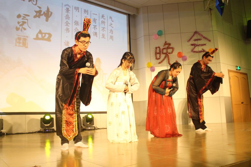 由杨韵带来的开场曲《one last time》活跃了全场气氛,为晚会营造了热烈的氛围。舞蹈《as if it is your heart》和《burn it up》使全场的气氛达到了一个高潮。情景剧将青春重现在大家眼前,充满笑点与泪点。朗诵《大医精诚》蕴含的充沛情感证实了中医理念,体现了中医文化的源远流长,展示着东方的神韵。各种歌舞类表演也是赚足了眼球。由活动中进行的游戏互动带动了全场的氛围,使每位观众都参与其中,大展歌喉。附属医院中医科林丹主任还做为神秘嘉宾带来了一首《明月千里》,引得现场鼓掌无数。部长们的舞蹈《眉飞色舞》为晚会带来了欢乐的气息。一首《相亲相爱一家人》为本场晚会划上了圆满的句号,同时也向各位观众展现了中医学院这个团结的大家庭。