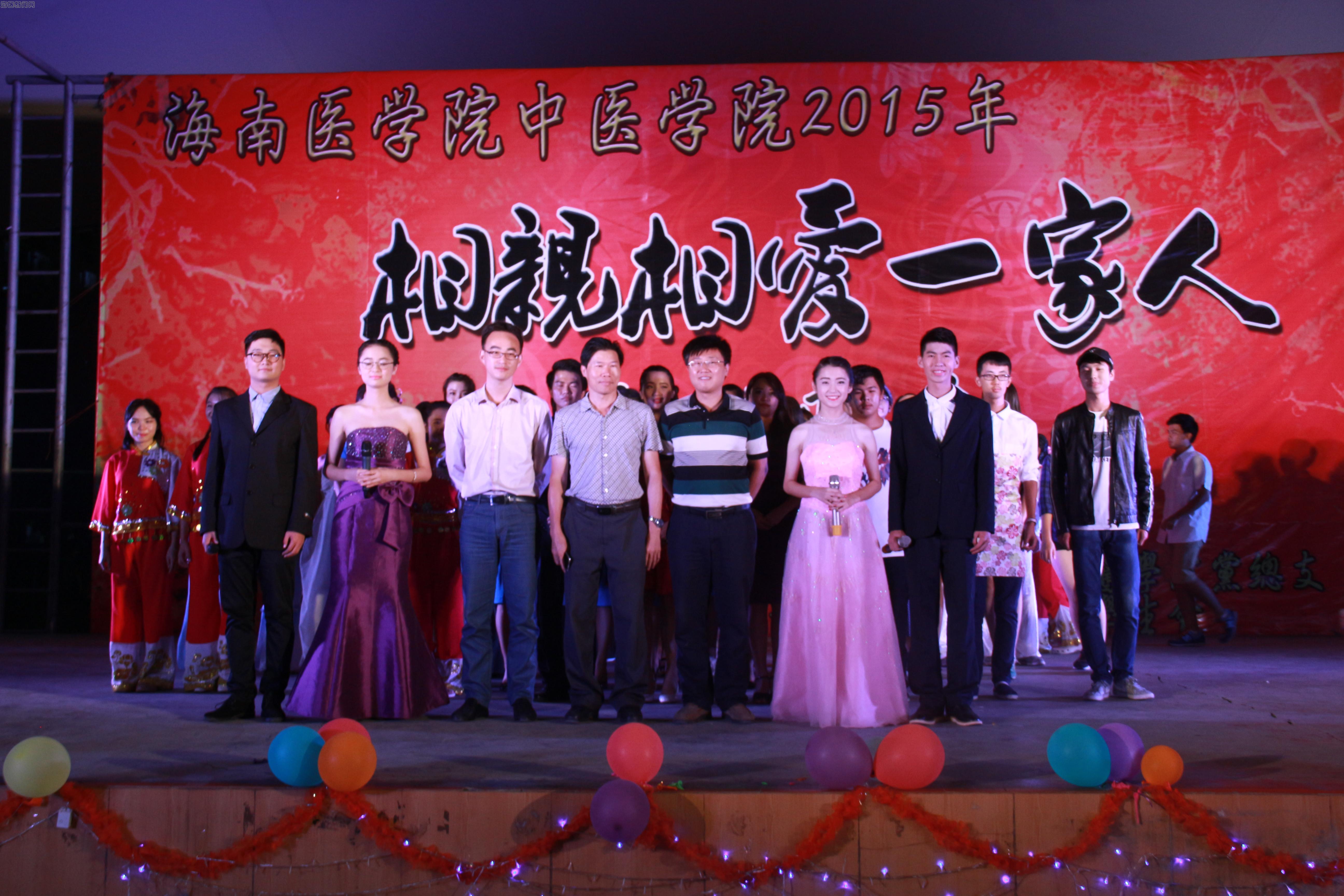 中医学院党总支承办的以“相亲相爱一家人”为主题的迎新晚会在风雨操场隆重举行。出席本次晚会的嘉宾有中医学院副院长冯志成老师、团委书记王小强老师和辅导员孙学文老师。