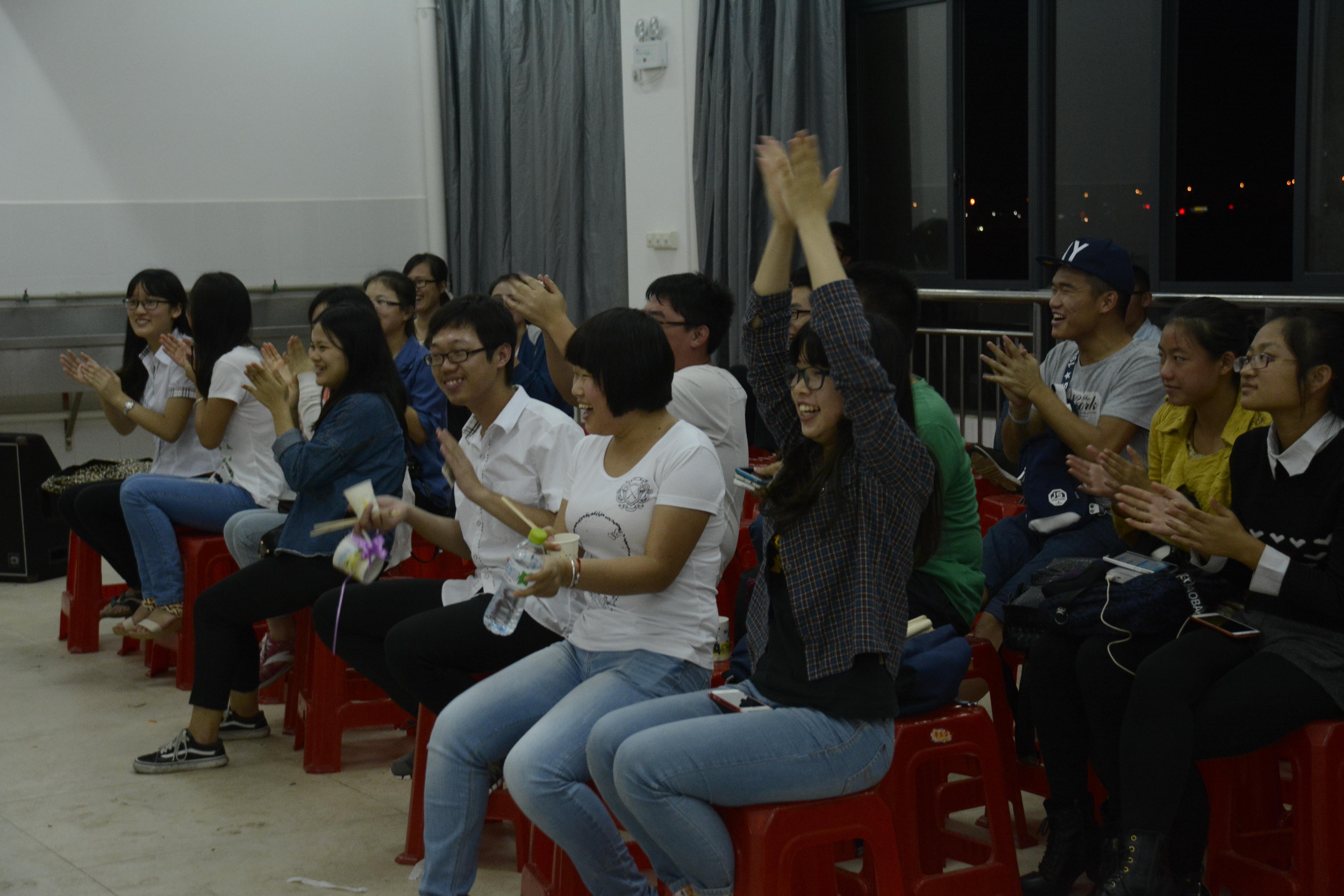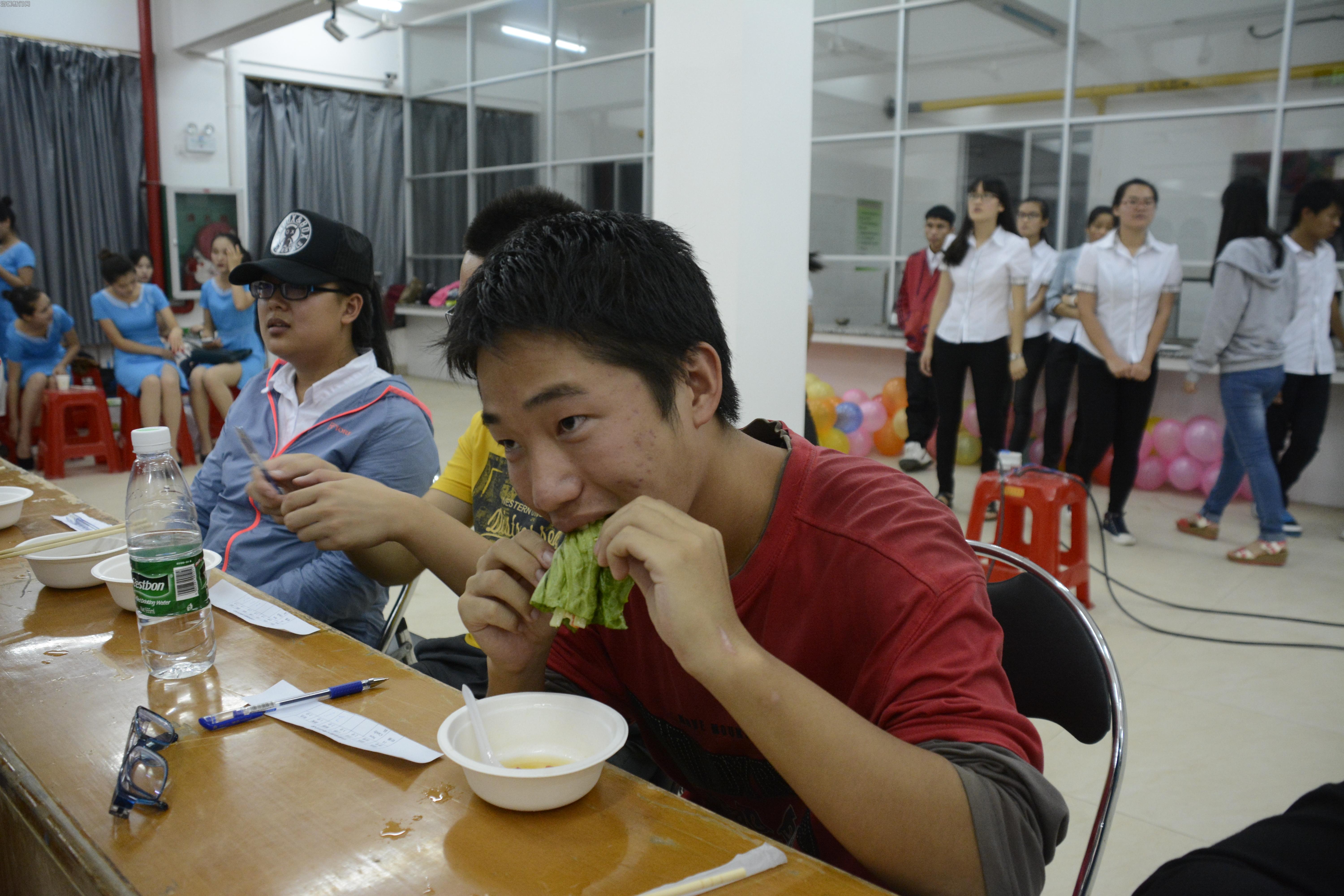 活动伊始,七支参赛队员分别进行了自我展示,口号响亮,团队精神统一,让现场观众对接下来的美食充满了期待。在整个活动期间,除了选手们热火朝天的比赛外,还有许多精彩的环节。秦伶俐同学深情献唱动听民歌《锦上南京》,让比赛在美妙的歌声中进行,与此同时还有互动环节。主持人通过现场观众微信互动的形式抽取了幸运观众,送上了精美的小礼品,并通过抢红包的形式抽取大众评委,让同学有幸地成为美食家。现场气氛十分活跃。