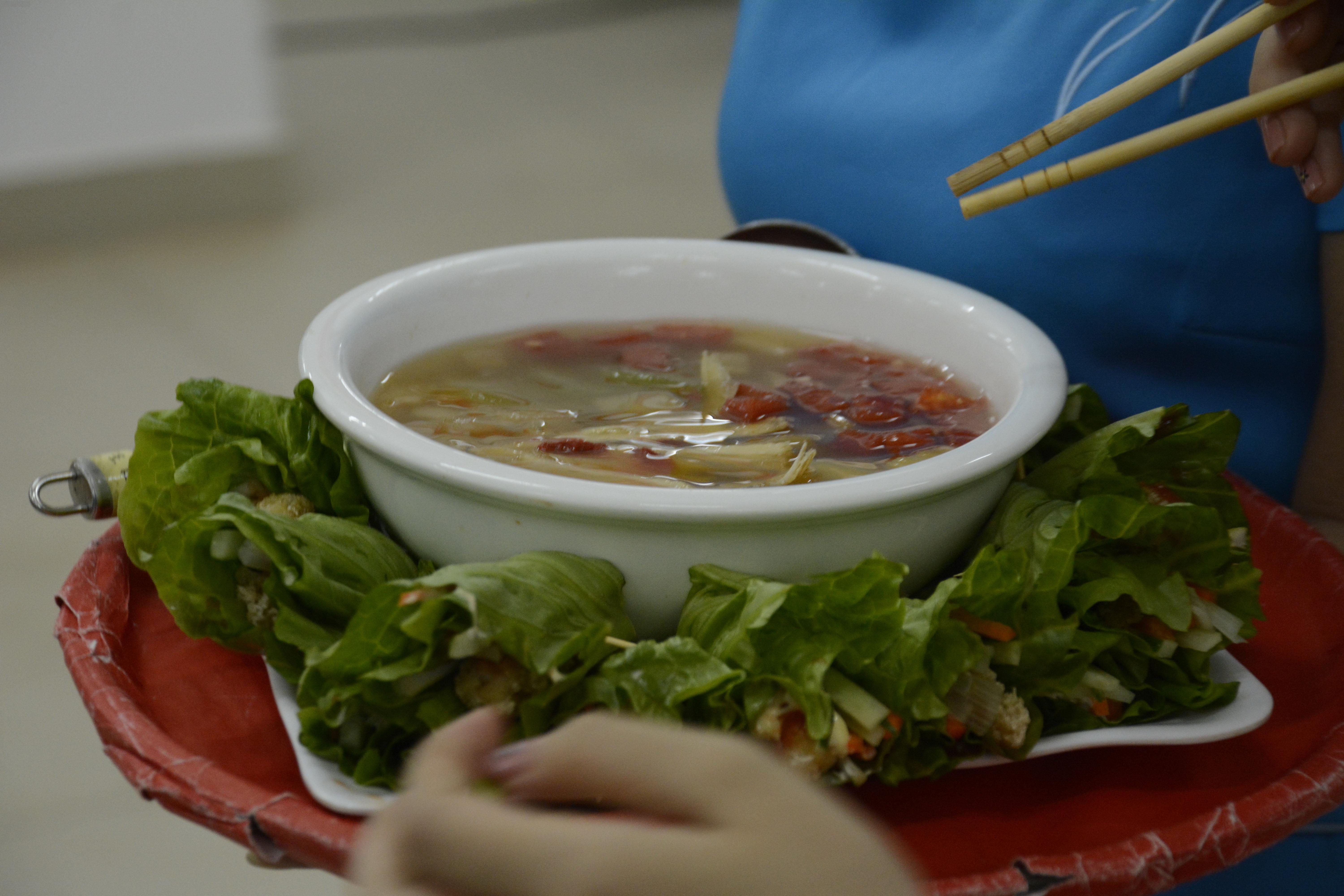 2014年4月12日19:00,中医学院在第二食堂四楼举办了“药膳烹饪大赛”,该活动以增加学生对中医药膳的了解为出发点,为同学们提供一个展现自我和展现厨艺的舞台,让师生更好的体会中医药膳的魅力。莅临本次活动的嘉宾有团委书记王小强,中医学院高湲老师,宫爱民老师和王长福老师。邢颖,陈志凌主持了这次大赛。