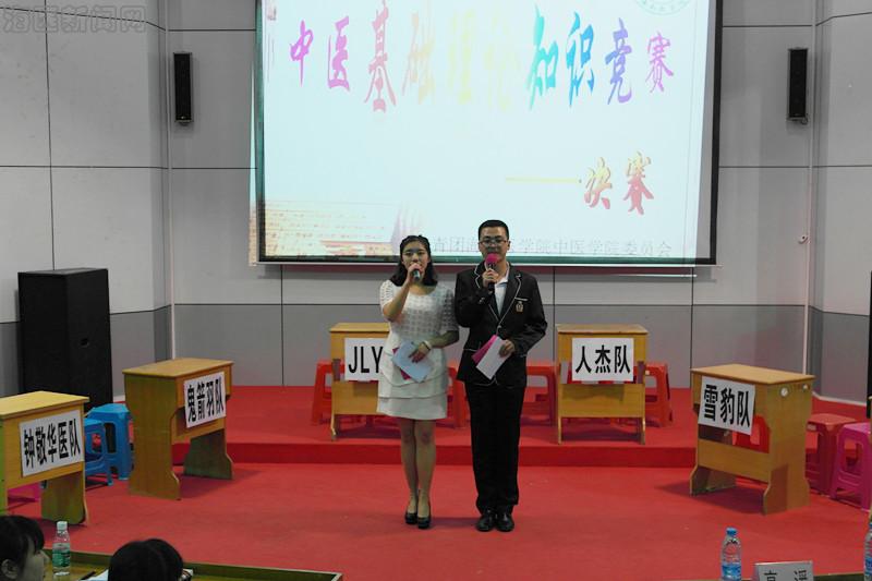 中医学院团委学生会学习部主办的第六届国医节系列活动之第二届中医基础理论知识竞赛决赛在多功能报告厅隆重举行,出席此次大赛的嘉宾有高湲副教授、宫爱民副教授和辅导员杨帆老师,此次大赛由李泽南和肖雯主持。