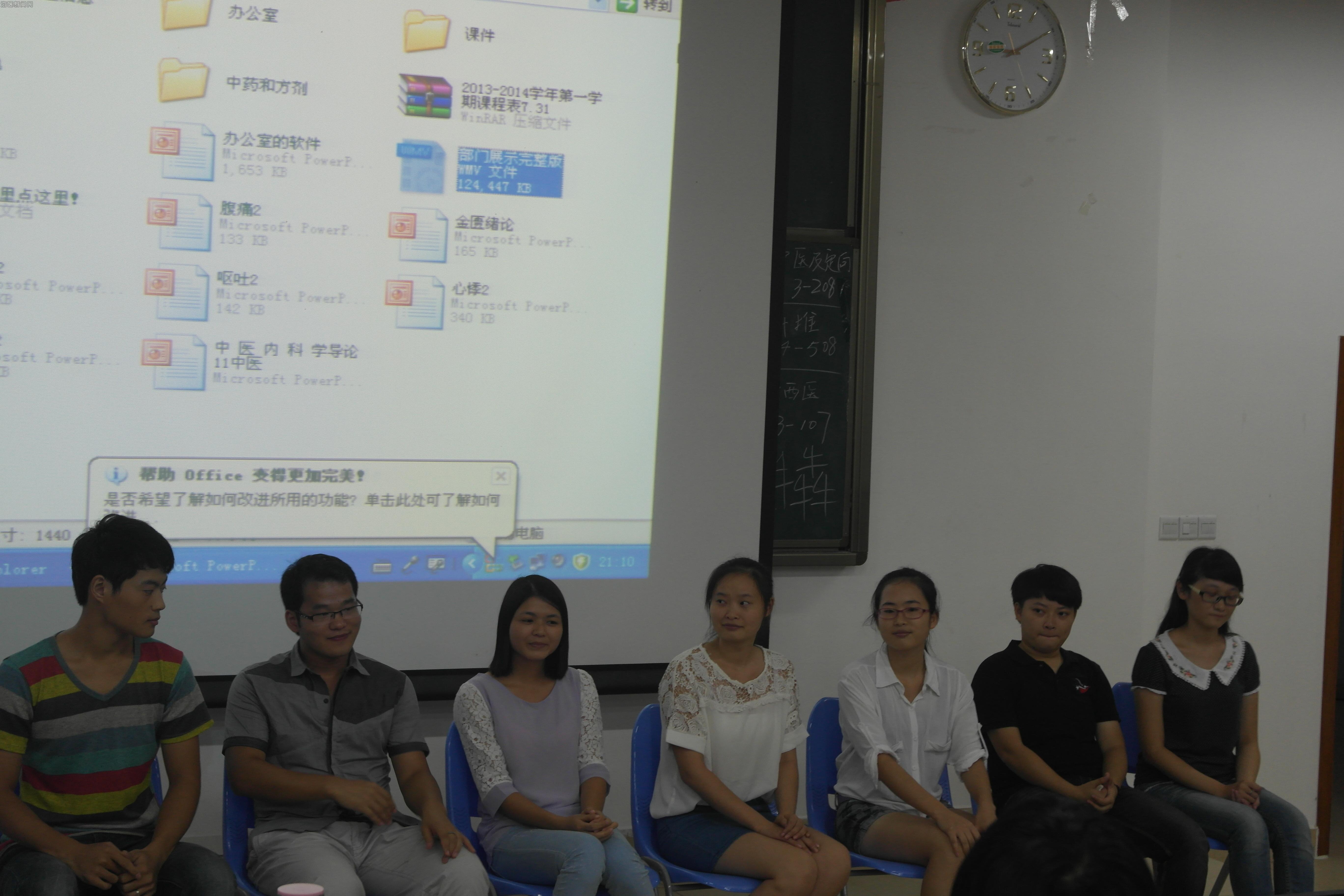 为了更好的搞好院学生会的工作,中医学院于9月12日晚7:30在新址4-109隆重举行了“亲,欢迎你们的加入”——部门展示大会。本次大会由中医学院学生会副主席杨振武同学主持,中医学院学生会主席郭婕同学、中医学院学生会各部门干事以及中医学院2013级全体新生出席了本次部门展示大会。